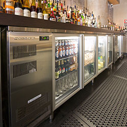 Commercial bar fridges can be upright with special lighting and glass fronts so customers can quickly view the beverages on offer for their order. These are compact and feature bright internal lighting to show the array on offer. They also feature stronger than usual refrigeration fans to ensure the contents remain chilled with the constant opening of the glass doors.