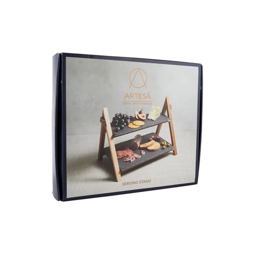 2 Tier Wood & Slate Serving Stand 418x353x55mm Artesa