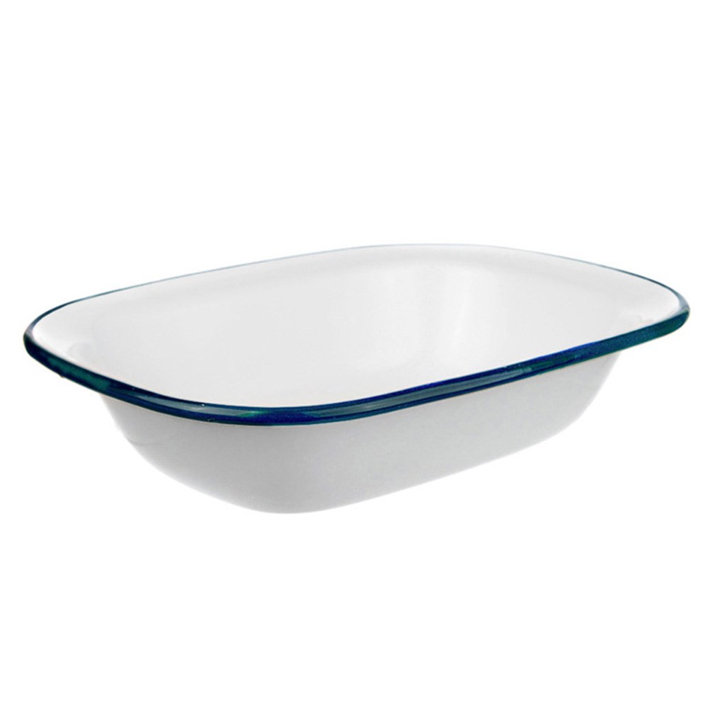 Pie Dish Rectangle White Blue Rim Enamel 170X125X39mm Urban Style 2442030