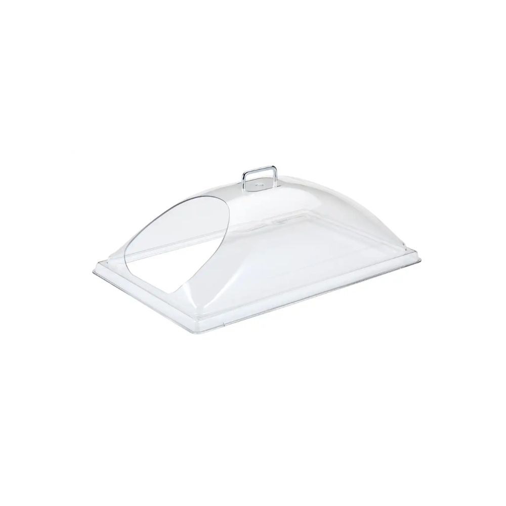 Designed for demanding commercial environments, the Display Cover Dome Polycarbonate Clear 1 End Cut Cambro offers maximum durability and visibility. Made from virtually unbreakable polycarbonate, it's built to withstand constant use while keeping food protected and easy to access.