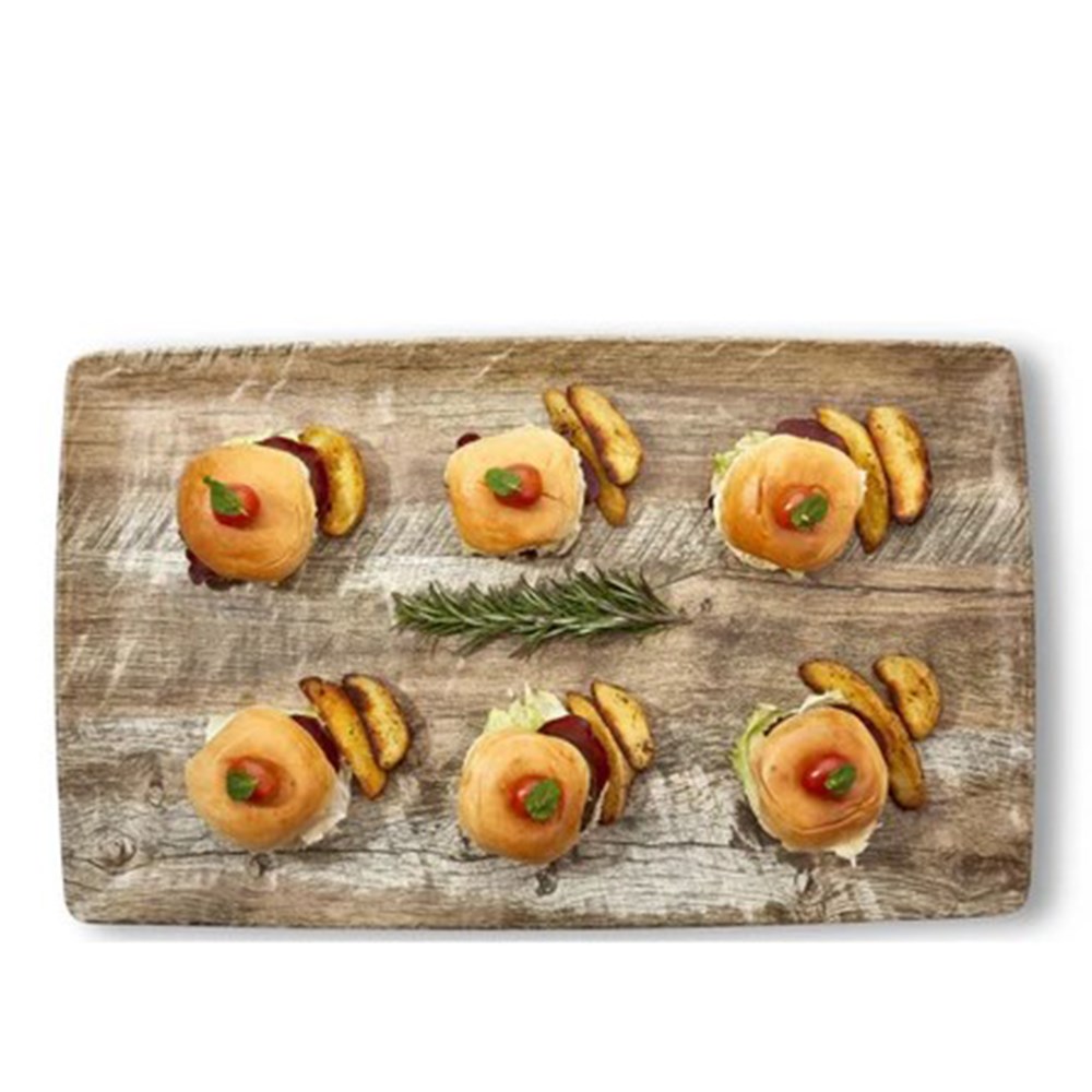 Add a touch of rustic charm to food presentation with this 530x325mm GN1/1 Platter from the Sierra Rustic range by TopStyle. This beautifully crafted platter features a natural wood inspired design, bringing warmth and character to any restaurant, buffet, catering, or event setup.