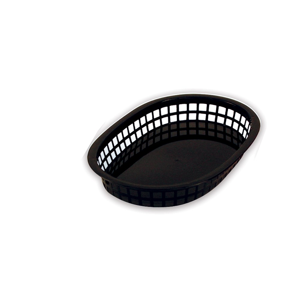 This black oval rectangular basket is a popular stable in cafes and restaurants as it suits many purposes in front and back of house. The most common use is a serving basket for burgers, chips, sandwiches and other finger foods. It can also be used for storage.