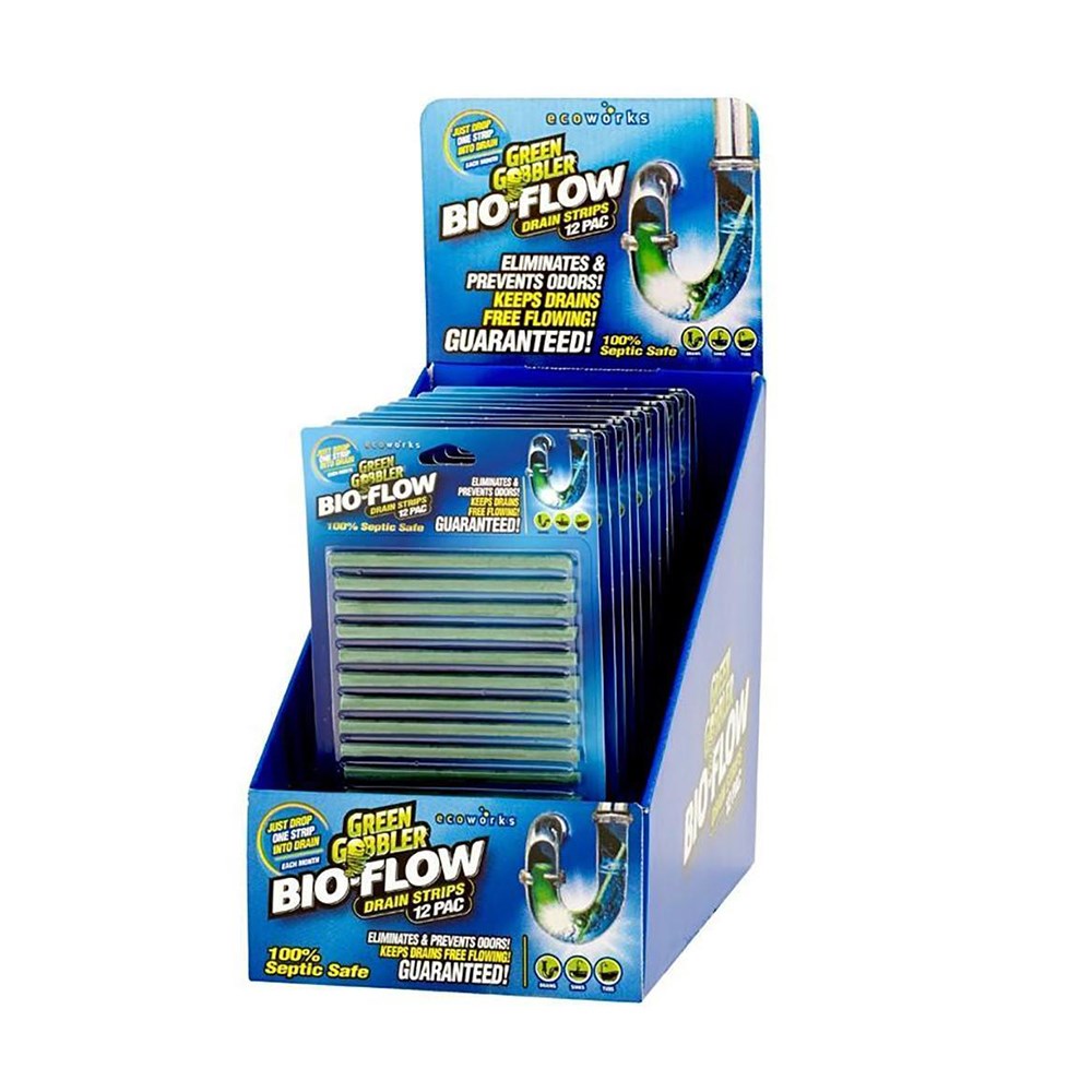 The Bio Flow Drain Sticks Green Gobbler are a highly effective solution for maintaining clean, free-flowing drains. Each pack contains 12 Bio-Flow sticks, which quickly eliminate grease, oil, fats, scum, and food, making drain cleaning easy and efficient. These slow-dissolving enzymes work to break down lodged organic materials, ensuring your drains stay clear.
