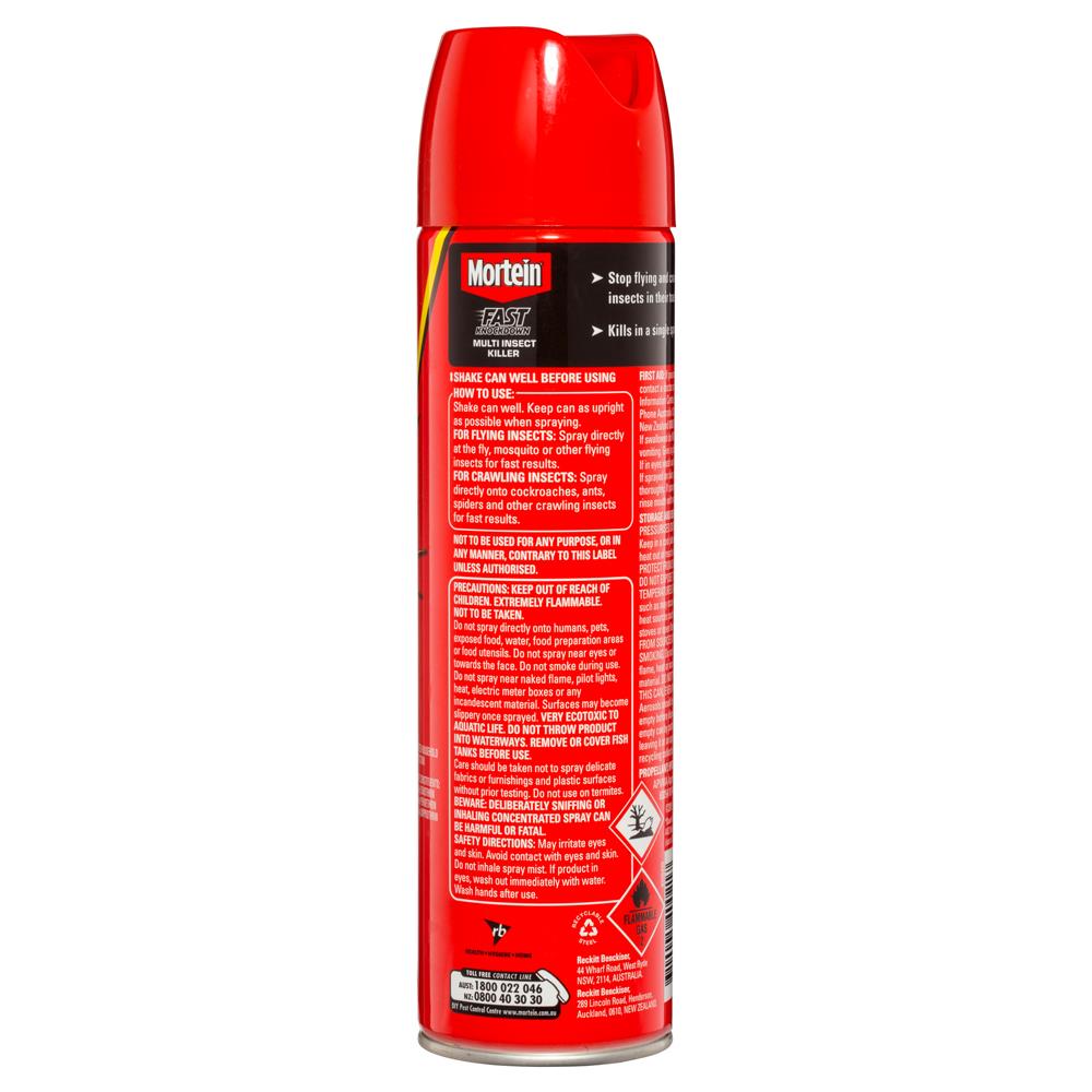 This Mortein Fast Insect Killer Spray is a multi-purpose spray for direct kills or as a surface spray for flying and crawling insects. This spray works instantly for use on flies, cockroaches, spiders, ants, mosquitoes, moths, and silverfish.