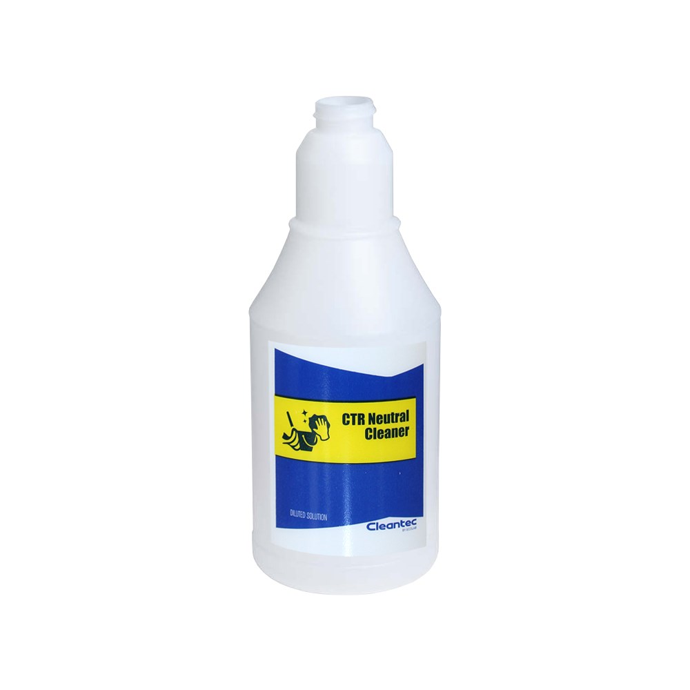 The CTR Neutral Cleaner Bottle by Ecolab is a durable, empty decant spray bottle designed for use with Ecolab's neutral cleaning solutions. Clearly labelled for easy identification, it supports safe and efficient cleaning in commercial environments.