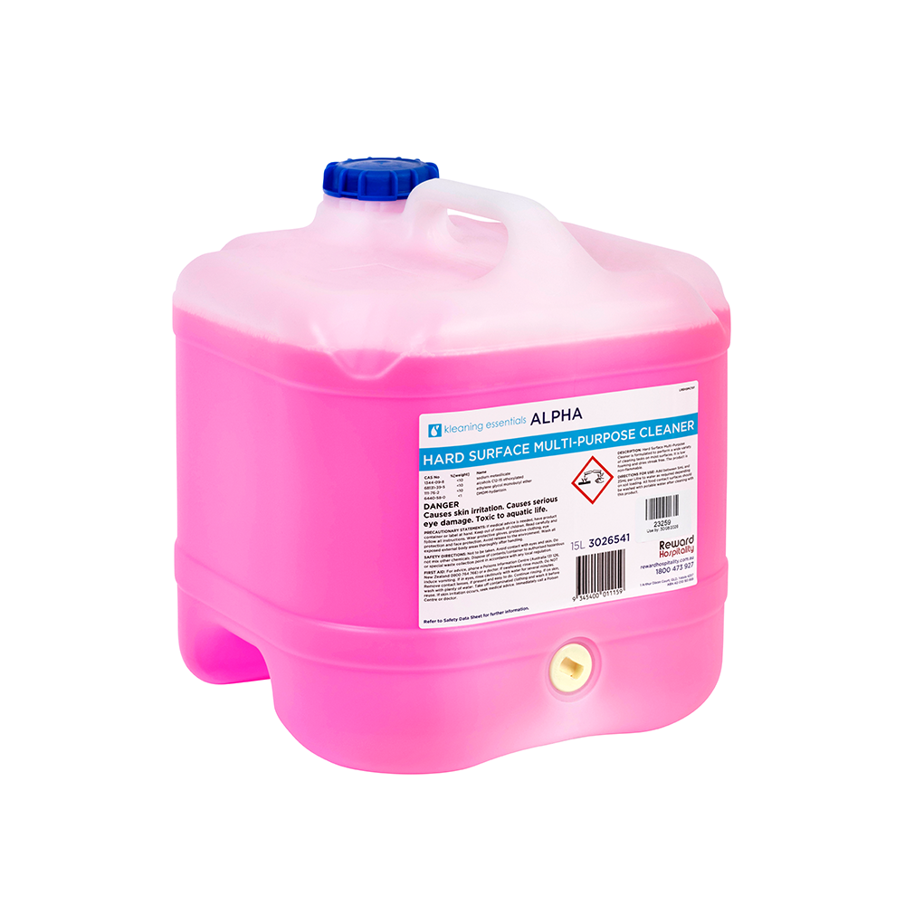 Alpha Hard Surface Multi-Purpose Cleaner will make your hard surfaces shine. The heavy duty all purpose cleaner is easy to use and will remove all food and grease soils. Alpha by Kleaning Essentials is a cost-effective bulk-buy range that comes in 15L bottles. Perfect for small to medium-sized cafés and restaurants, Alpha has seven quality formulations that have been purposefully colour coded to aid in OH&S compliance.