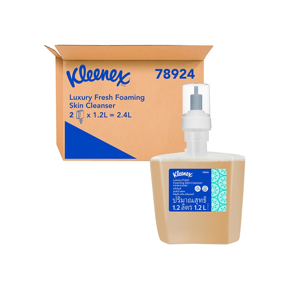 Uplift your washroom experience with the trusted Kleenex brand. It offers a Luxury Fresh Foam Skin Cleanser in 1.2L that effectively cleans skin. The added cucumber and aloe vera extract creates an enjoyable skin-cleaning experience, encouraging better hand hygiene throughout the workplace. Each foam soap cartridge provides up to 1,800 dispenses, lowering maintenance time and cost. The cartridges are also easy to load and sealed to protect the hand soap prior to use, and controlled dispensing supports increased efficiency and ease of use.