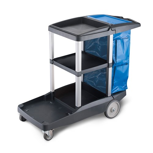 Add convenience and mobility to your hotel, motel, and healthcare facility with the Oates Platinum Janitors Cart. The laundry bag features the lid to hide rubbish contained within the laundry. With fordable handle assembly and the rear platform, you can organise your cart to the best fit for your needs. • Zip bag included