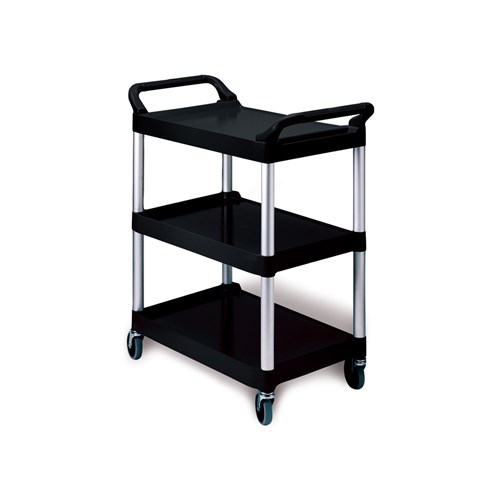 Open Sides 3 Tier Utility Trolley Small Black Rubbermaid