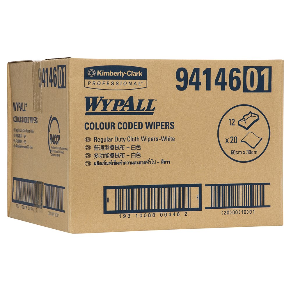 The Wypall White Colour Coded Regular Wipes provides an effective and hygienic cleaning solution for a wide range of cleaning tasks. These wipes are available in 3 different colours for task segregation and reducing the risk of cross-contamination. Ideal for use for wiping surfaces and a range of cleaning tasks including surfaces, sinks, and machinery. Certified by HACCP, these wipers are suitable for use on surfaces in contact with food.