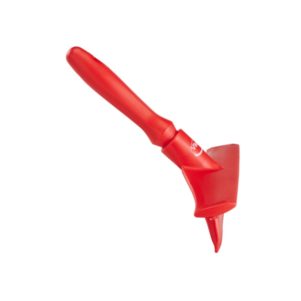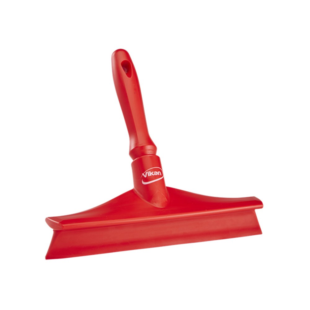 The Vikan Single Blade Hand Squeegee 245mm in colour red is a hygienic squeegee suitable for removing excess water and food debris from food-preparation surfaces. It has a soft and flexible blade, and it is fully moulded to ensure it is easy to keep, even after repeated use. Features a sharp and smooth edge made to lift water and food debris without streaking.