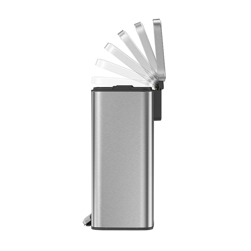 Maintain room cleanliness using the Compass Stainless Steel Pedal Bin. It has a 50L capacity to hold your trash. Made with a fingerprint-resistant brushed stainless steel finish, it keeps the bin looking pristine by repelling smudges and reducing visible marks. Its soft-close lid prevents slamming noises and protects fingers, promoting a safe environment.