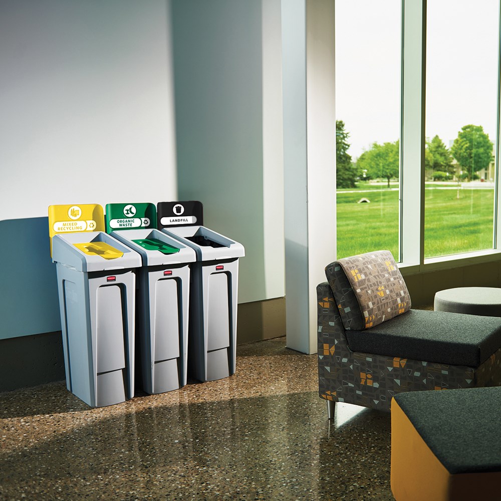 This kit is compatible with additional Rubbermaid accessories to create a complete recycling station, including the Slim Jim Recycling Station Lid (Product Codes: 2206515 & 2206516), Slim Jim Recycling Station Billboard (Product Codes: 2206518, 2206519 & 2206517), and Slim Jim Recycling Station Waste Stream Labels (Product Code: 2206521). These accessories support clearer waste stream identification and help tailor the system to meet specific operational needs.