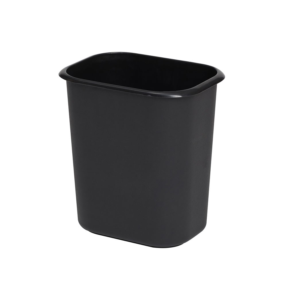 Classic black waste bin, small in size to fit into compartments under kitchen and bathroom benchtops, workspaces or within your motel or hotel suite.