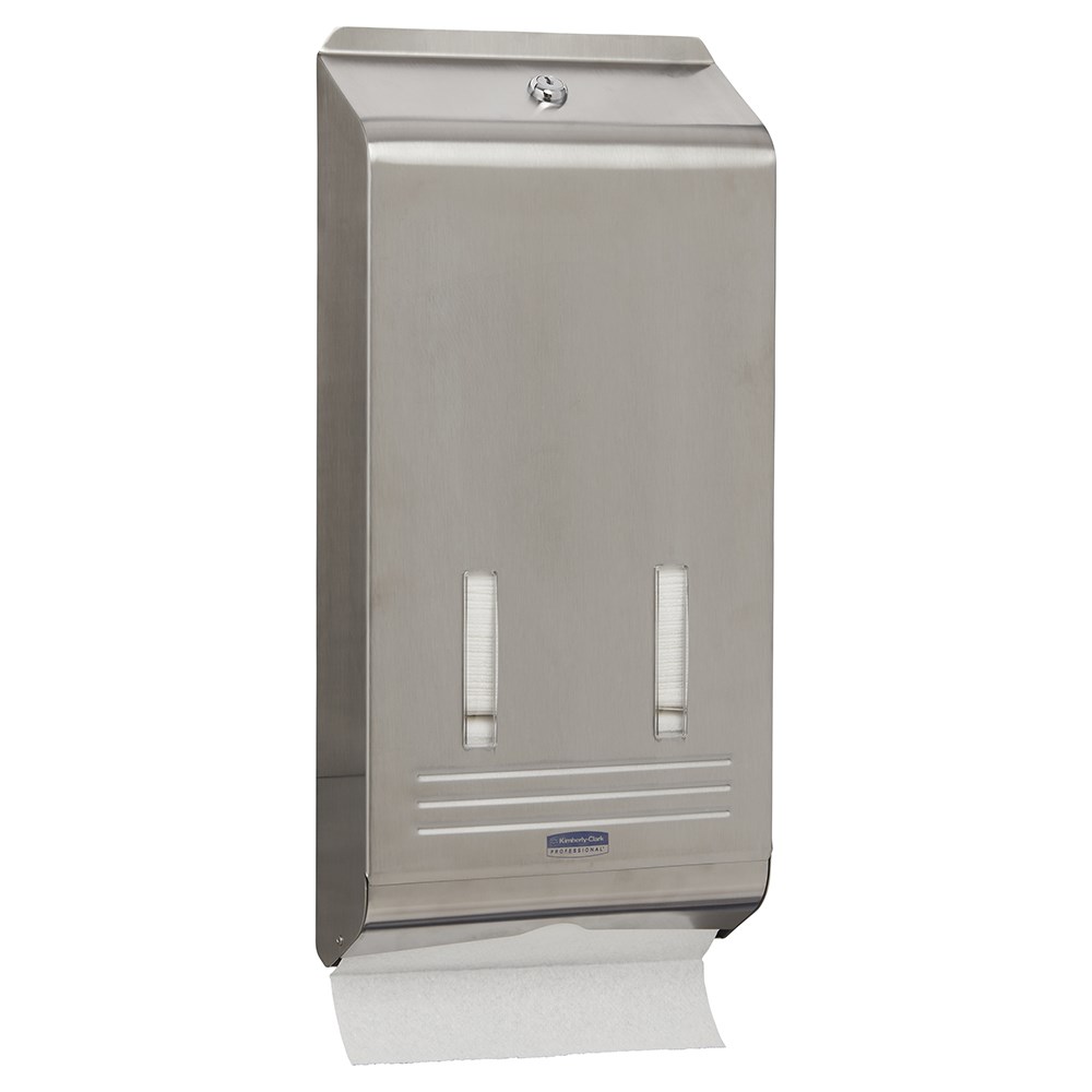 The Kimberly-Clark Stainless Steel Towel Dispenser is a high-capacity, easy-to-load lockable dispenser that requires less frequent servicing and can be topped up for lower maintenance and reduced risk of running out. The single-sheet dispensing method ensures the user touches only the towel used, helping to reduce the risk of contamination and promote good hygiene in the bathroom. Also, it helps to reduce overuse, waste, and cost.