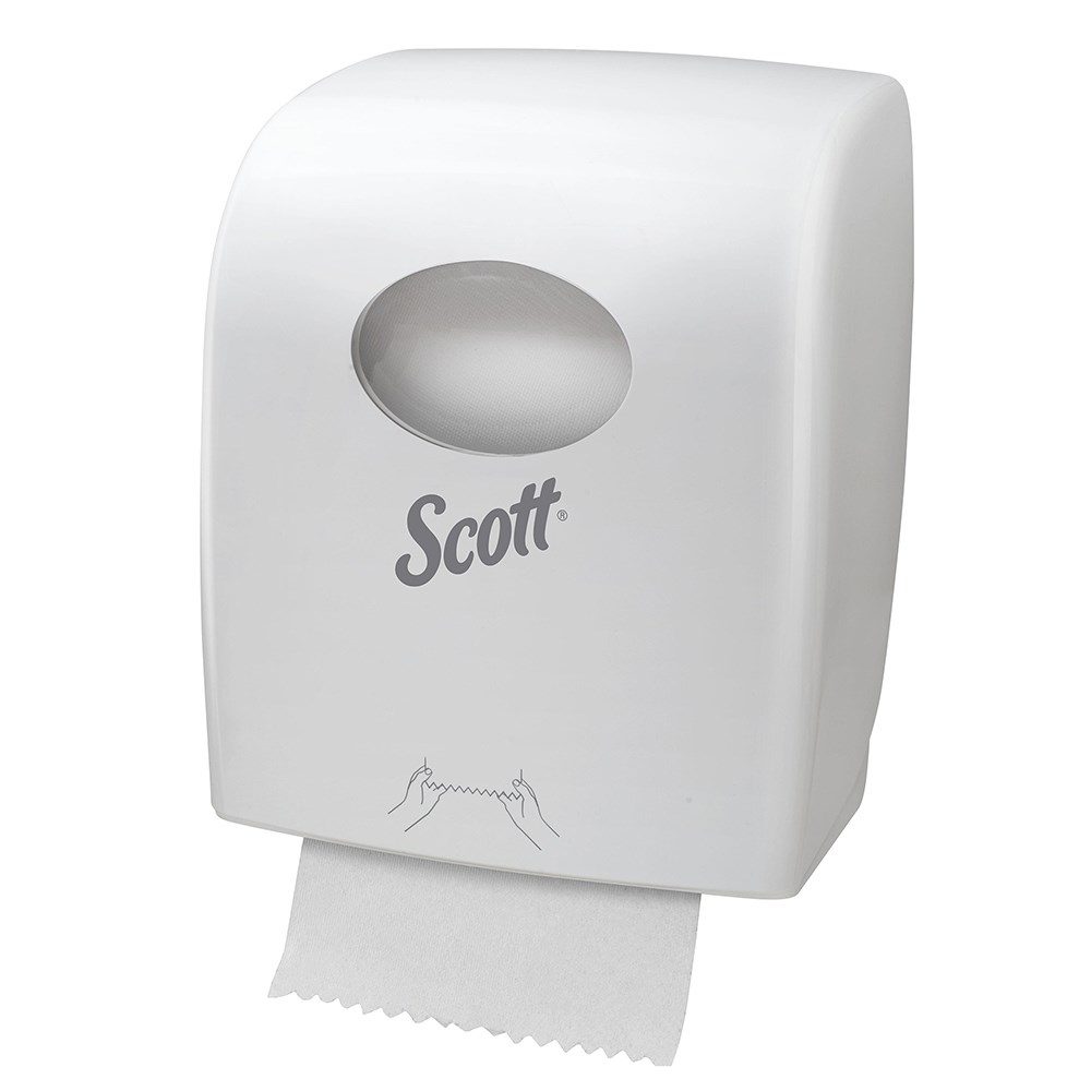 The Scott hand towel dispenser is designed to enhance efficiency with easier capability to pull towels reducing force. Finished in a white high-gloss, the Scott Hand Roll Towel Dispenser dispenses 15% more sheets per roll to help reduce refilling frequency while being 15% more compact, enabling use in more constrained spaces. For a hygienic option, the dispenser are designed with no dirt and dust traps, offering you guests a clean and mess free option to dry their hands.