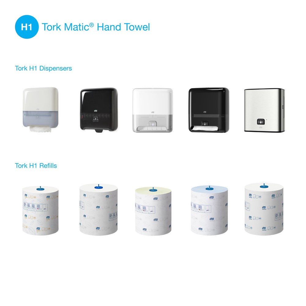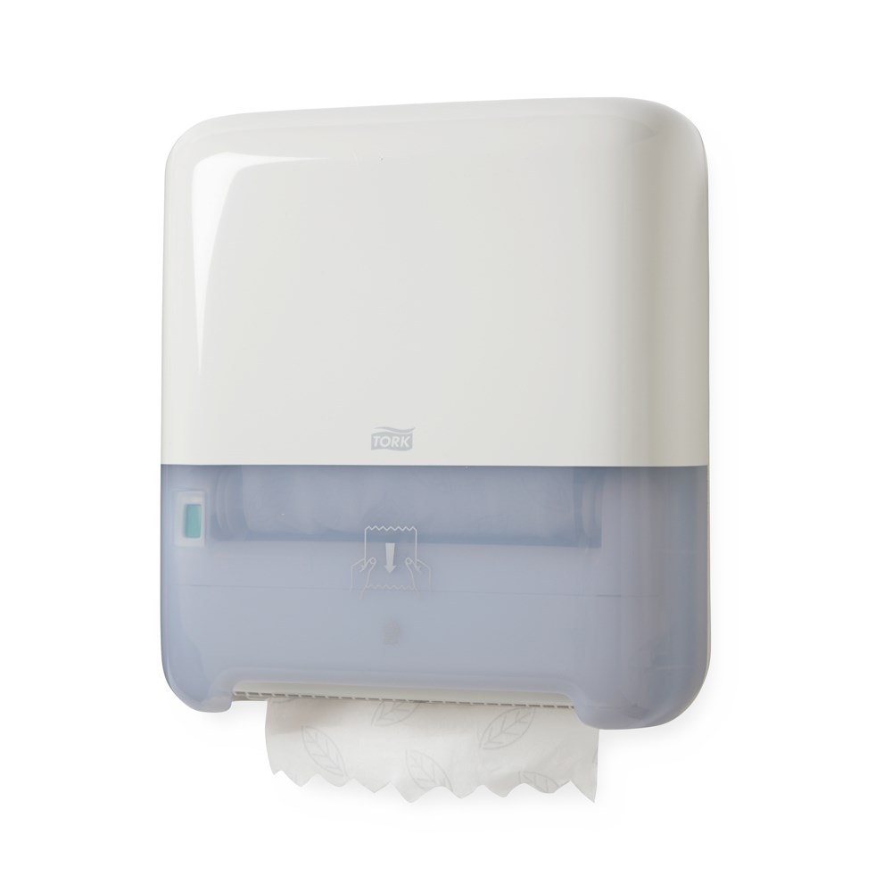 Tork Matic H1 White Hand Towel Roll Dispenser in Elevation Design delivers easy maintenance to keep busy washrooms functioning and reduces consumption with one-at-a-time sheet dispensing.
