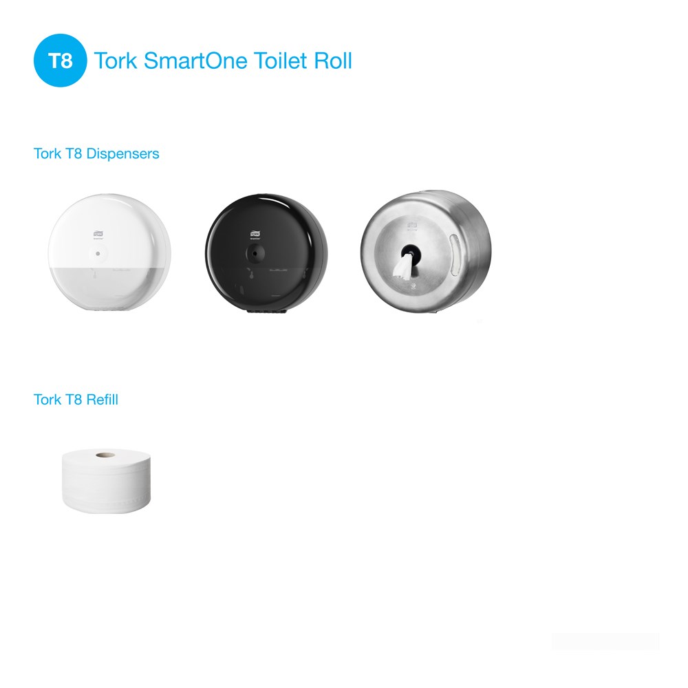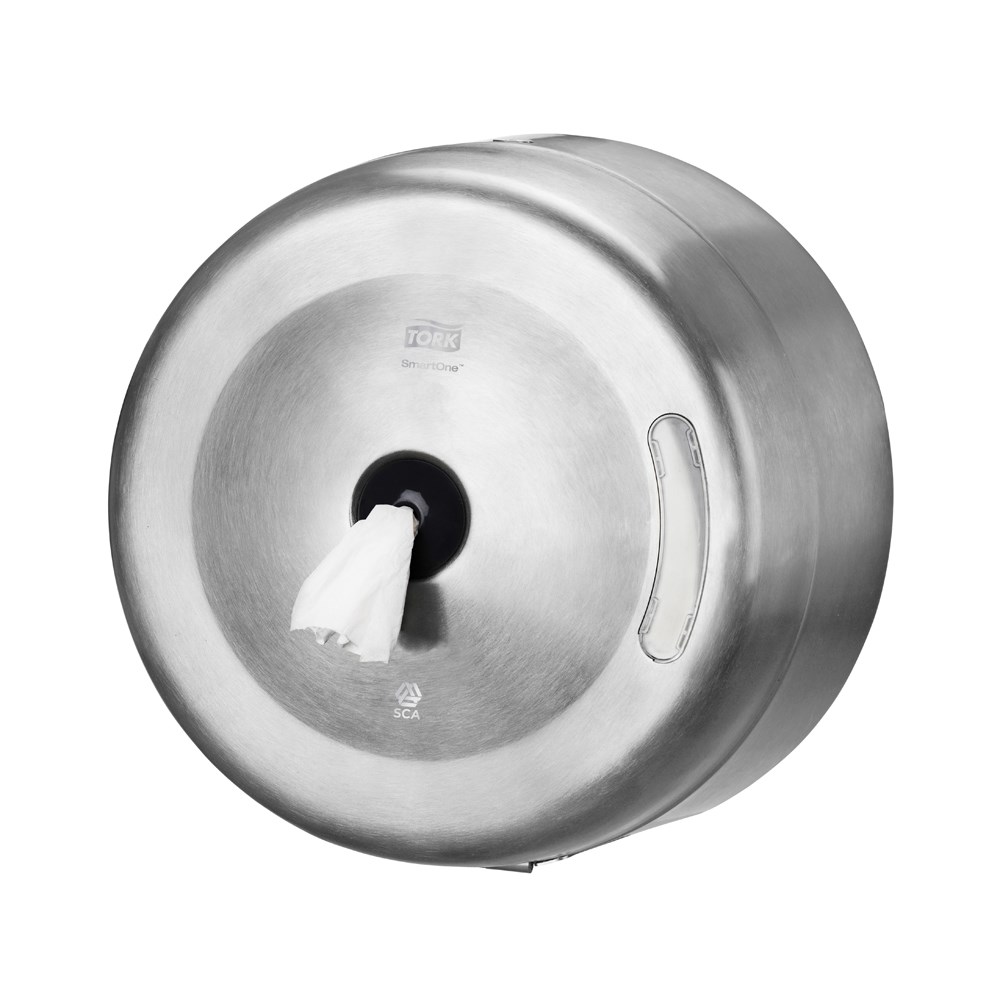 The Tork SmartOne Toilet Roll Dispenser is an efficient and very robust stainless steel dispenser suitable for demanding washrooms with high traffic. The sheet-by-sheet dispensing helps reduce consumption by up to 40 % compared to traditional jumbo roll dispensers, which means more visits per roll.