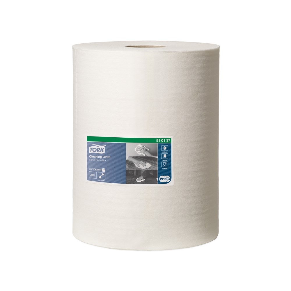 The multipurpose Tork Cleaning Cloth is soft and flexible, yet strong. It is ideal for most lighter cleaning tasks, and quickly absorbs both oils and liquids, which makes your cleaning efforts easier. This cloth can be used in either the Tork Floor or Wall Stand dispensers, which are developed for safety, efficiency and reliability or the Tork Maxi centrefeed or Boxed Combi Roll Dispenser, which are designed for smoother single hand dispensing.