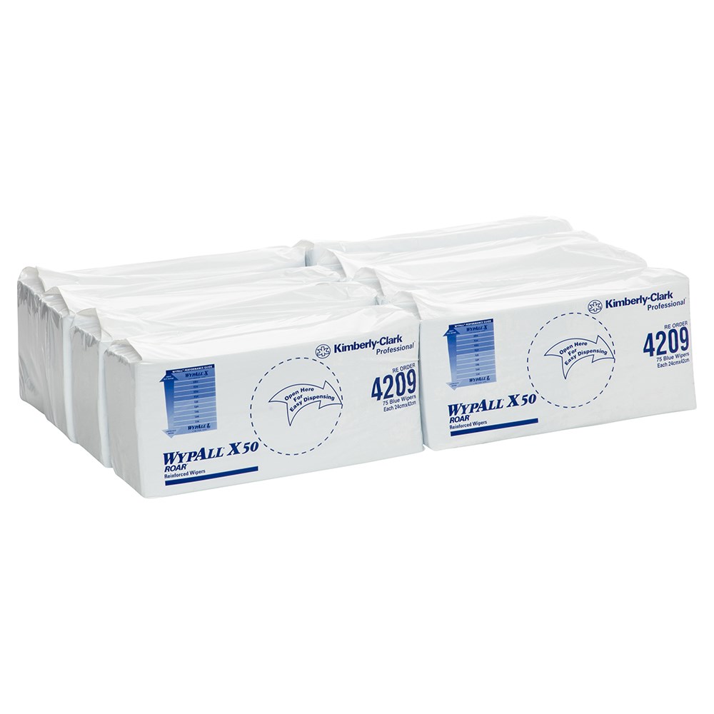 • Each pack of WYPALL® X50 Reinforced single sheet blue Wipers contains 75 Wipers