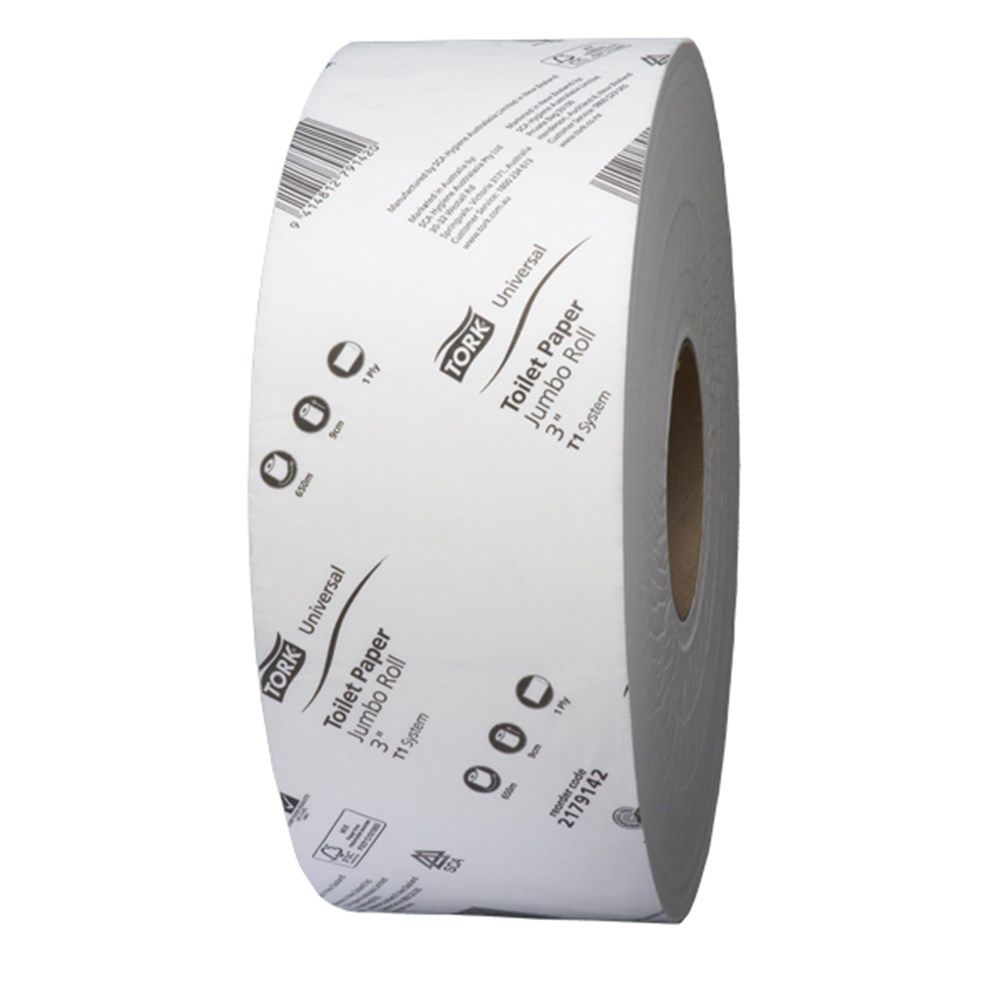 Tork T1 Universal paper is quality single-ply toilet tissue. The Jumbo toilet roll is ideal for busy washrooms. The paper is accredited with NZ Environmental Choice Ecolabel & is FSC certified