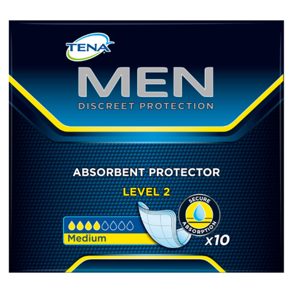 TENA Men Absorbent Protector LEVEL 2 is suitable for protection against drips and small dribbles. The shield liner contains an adhesive strip to hold securely to firm-fitting underwear and the liner is very thin while being able to quickly absorb for discretion and comfort.