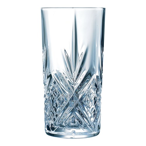 Serve your signature drink with this Broadway range 300ml Highball Glass by Arcoroc. With its ornate cut glass design, this glass provides a unique, vintage look that is ideal for fine dining establishments, hotel banquet halls, and high-end bars. The transparency of the glass enhances presentation and brings a sense of sophistication to your establishment.