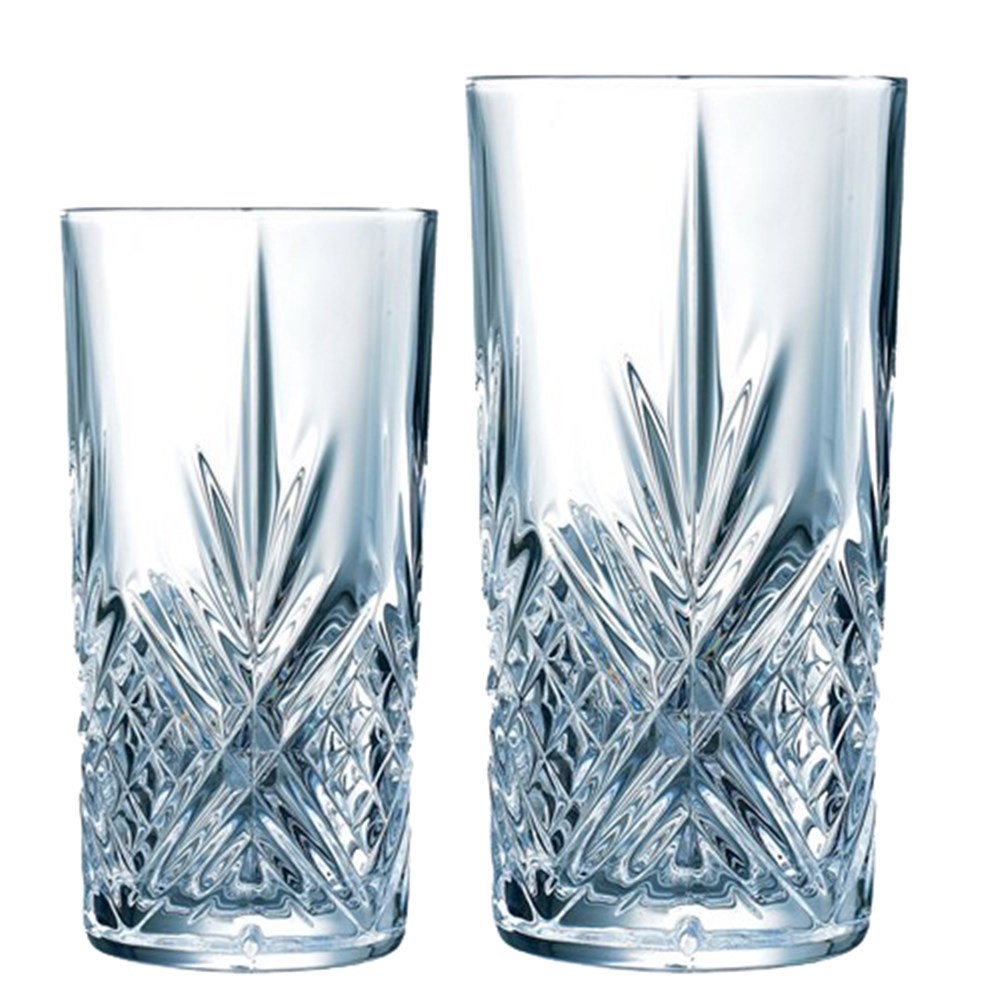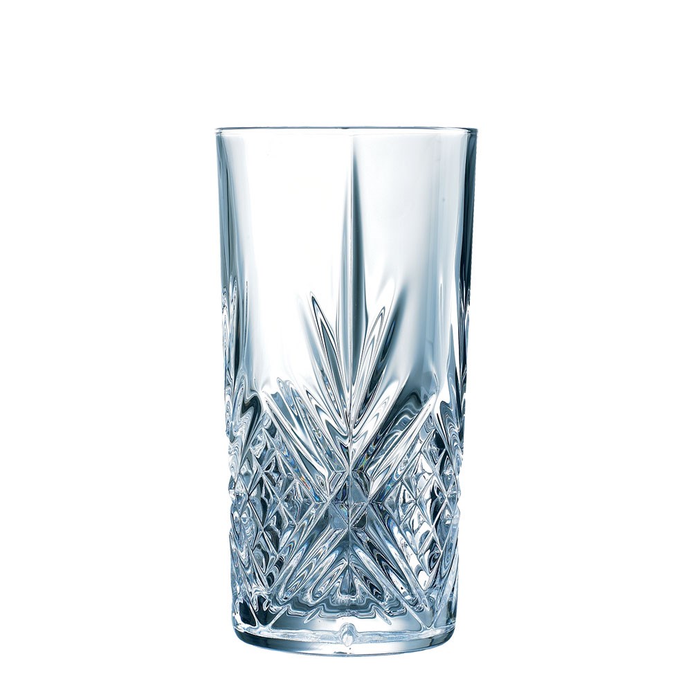 Serve your signature drinks in the Broadway range of Highball Glasses by Arcoroc. With their ornate cut glass design, this collection provides a unique, vintage look that is ideal for fine dining establishments, hotel banquet halls, and high-end bars. The transparency of the glasses enhances presentation and brings a sense of sophistication to your establishment.