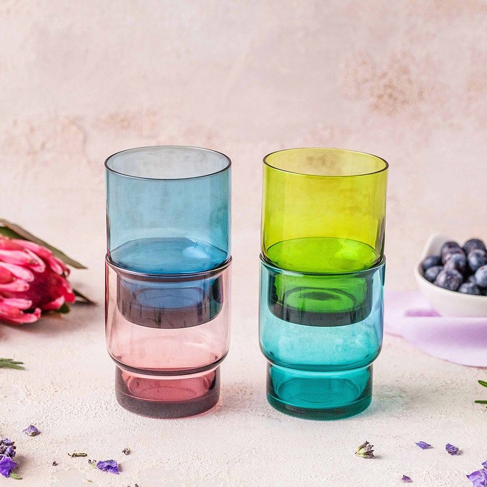 Need a pop of colour for your tabletop? Well grab yourself some of these funky clear coloured glassware. This 220ml purple glass from the Artic range by Essentials Collection is designed to stack on top of each other, which is exceptionally suitable if you need that extra bench space in the kitchen.