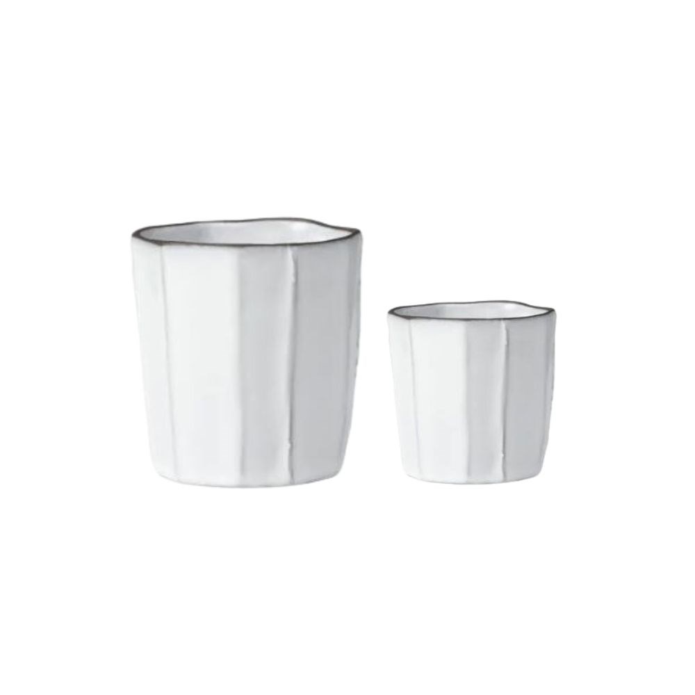 The Linea Organics Tall Tumbler White Tablekraft features a decorative irregular rim and tactile ridges, bringing a modern and sophisticated touch to any table setting. Hand-glazed for a smooth, elegant finish, it pairs effortlessly with the Tablekraft Linea White and Muse collections, offering versatility for various dining experiences.