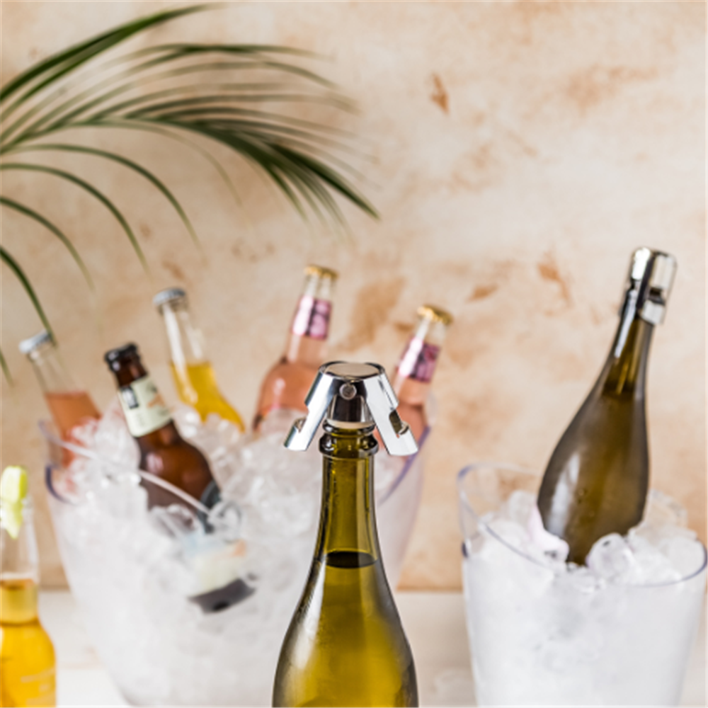 Made from durable stainless steel, the Pro.mundi Champagne Stopper is reusable and sanitary, making it a smart, long-lasting investment for your business. Its simple design allows for easy use and release, ensuring quick and efficient service while keeping your champagne fresh.