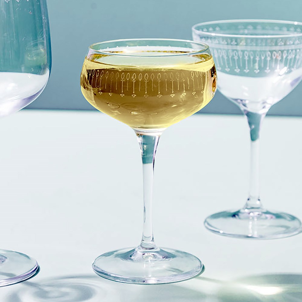 Elevate your cocktail or champagne presentation and impress your patrons with the timeless elegance of these Art Deco Coupe glasses. Whether you're hosting a sophisticated soiree or completing your vintage decor theme, this exquisite glassware range adds a touch of glamour to any occasion.