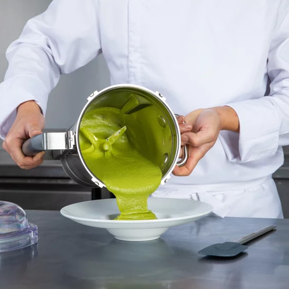 The Robot Coupe Kitchen Blender has a pulse button for precision cutting. It also has a timer, which allows the staff to multitask while prepping the meal, making it ideal for busy commercial kitchens of restaurants, cafes, juice bars, and catering services. Its exclusive X-flow technology creates maximum turbulence, resulting in a delicate and quick homogeneous texture. Easy to clean and maintain, the blender has a removable stainless steel blade.