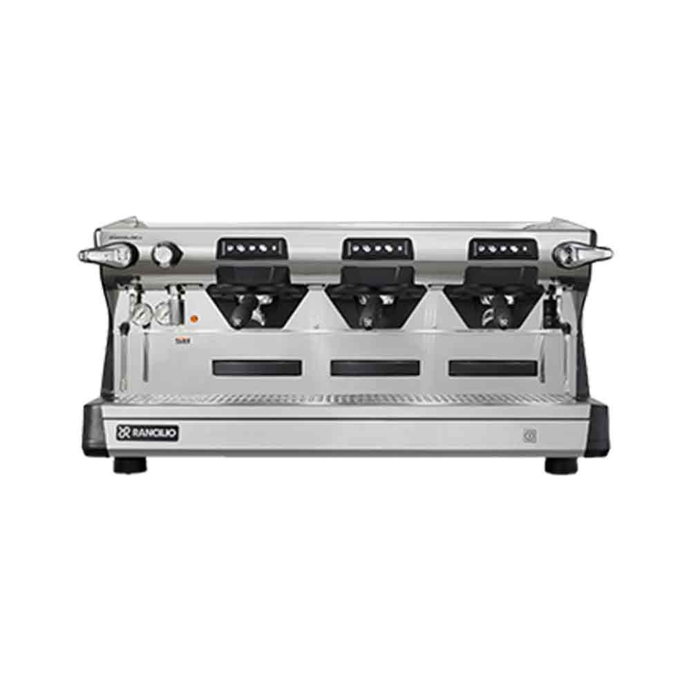 The Rancilio Classe 5 boasts an industrially inspired functional minimalism with contemporary aesthetics. It blends essential elegance, creating a distinctive personality. Baristas enjoy comfort and convenience with its modern side panels, ample group covers, and ergonomic working area. The Metal Dome technology in the keypad ensures a pleasant touch sensation. This machine features hand rolled copper steam boiler, backflow valve on boiler & steam tap, electrical heating, meltifunction onboard computer and USB port and built-in volumetric rotary vane water pump, Available in other group head option, standard and COMPACT versions.