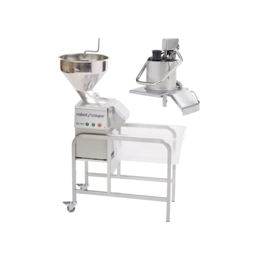 The Robot Coupe Vegetable Prep Machine 2 Feed Heads CL55 is engineered for high-volume commercial kitchens needing precision and performance. Powered by a robust 1100W, 3-phase motor, this unit efficiently handles slicing, ripple-cutting, grating, dicing, shredding, and French fry preparation. Its two feed heads offer versatility for continuous processing of various fruit, vegetables, and even cheese.