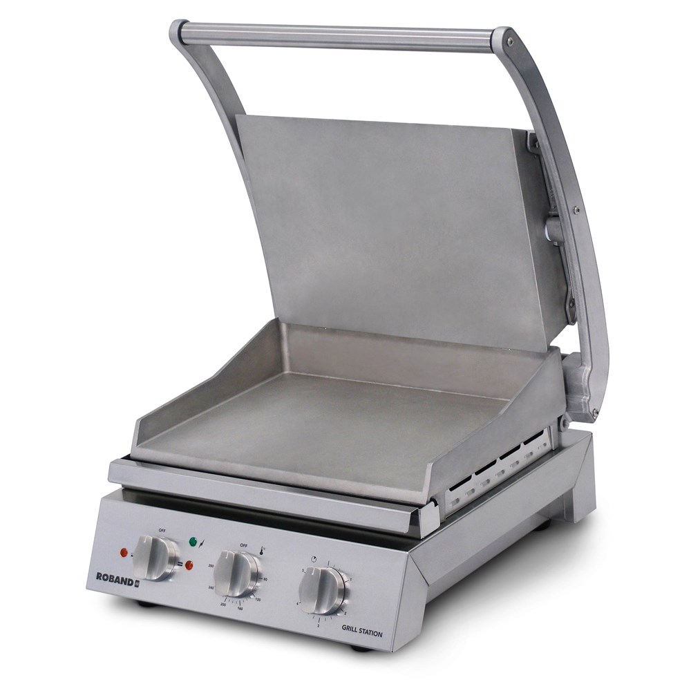 The modern, stylish Roband Grill Station, manufactured in Australia, sets the benchmark for commercial contact grills. The versatile unit rapidly toasts sandwiches, paninis and focaccias, in addition to producing beautifully seared and grilled tender meat, poultry and fish. Featuring elements embedded directly into smooth, high pressure die-cast aluminium plates, the cooking surface produces an even, extremely efficient heat transfer ensuring food is cooked rapidly with even colouration. With smooth plates, a load limiter reduces weight of top plate, optional ribbed top plate or non stick coating. The Roband Grill Station truly is a must-have for cafes, takeaways, sandwich shops or anywhere that toasting and/or grilling is required.