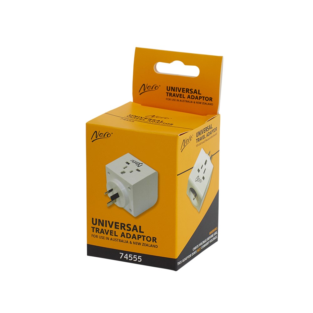 Effortlessly power your devices with the Nero Universal Travel Adaptor designed for use in Australia and New Zealand. This versatile adaptor accommodates plugs from the UK, Europe, USA, and various Asian countries, including China, Hong Kong, Taiwan, Japan, Singapore, Thailand, Korea, and Malaysia. Rest assured with AUS/NZ Electrical Safety Standards approval, ensuring a secure and reliable connection for your electronic devices. It's important to note that this adaptor does not convert voltages. It is suitable for 240V use only; if the voltage differs, a transformer must be used.