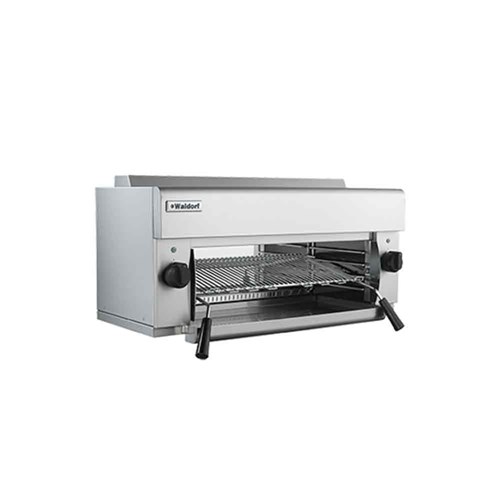 Experience the versatility of the Waldorf 800 Series Salamander range. The 900mm electric model offers precise and efficient heating with 2x 3kW infrared elements and left/right heat control. It features a four position racking (flat or inclined). Its monologue construction guarantees durability, while the removable base allows for easy cleaning and maintenance. Whether mounted on a bench or wall, this salamander is a perfect addition to your commercial kitchen. Pair it with other Waldorf 800 Series commercial equipment for a seamless kitchen setup.
