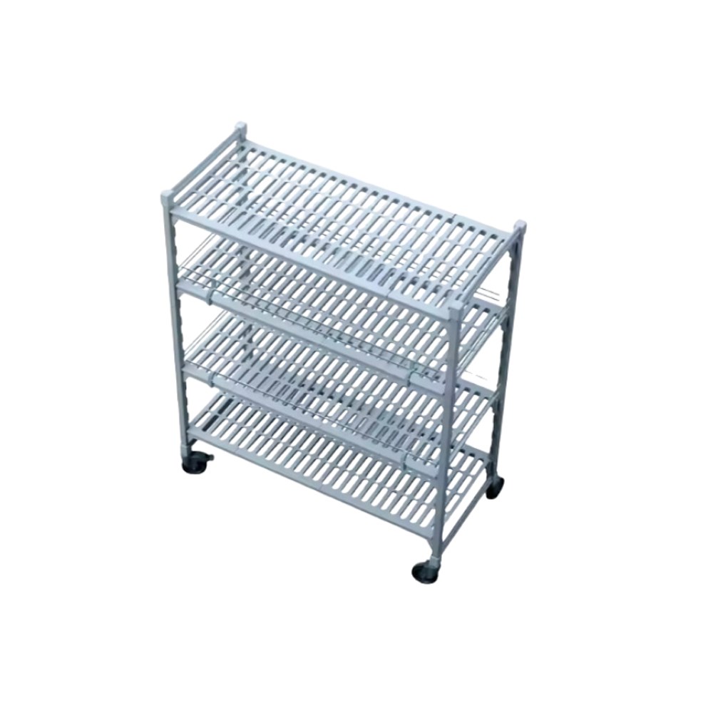 This silver 4-tier Shelving Unit is constructed from polypropylene which offers a range of benefits including resistance to moisture, stains, and corrosion. While strong and durable, this material is lighter than steel shelving making it easier to adjust and manoeuvre these shelves compared to other units.