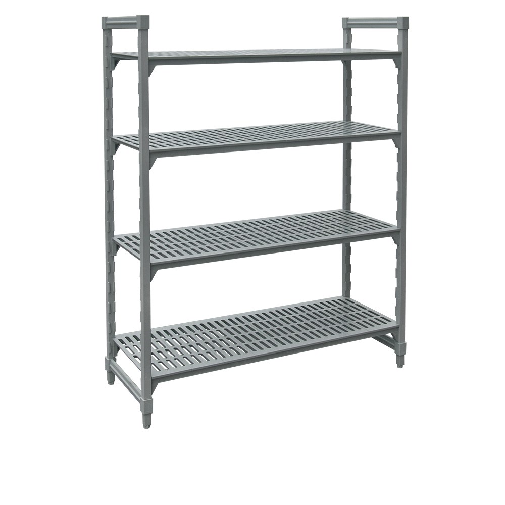 This silver 4-tier Shelving Unit is constructed from polypropylene which offers a range of benefits including resistance to moisture, stains, and corrosion. While strong and durable, this material is lighter than steel shelving making it easier to adjust and manoeuvre these shelves compared to other units.
