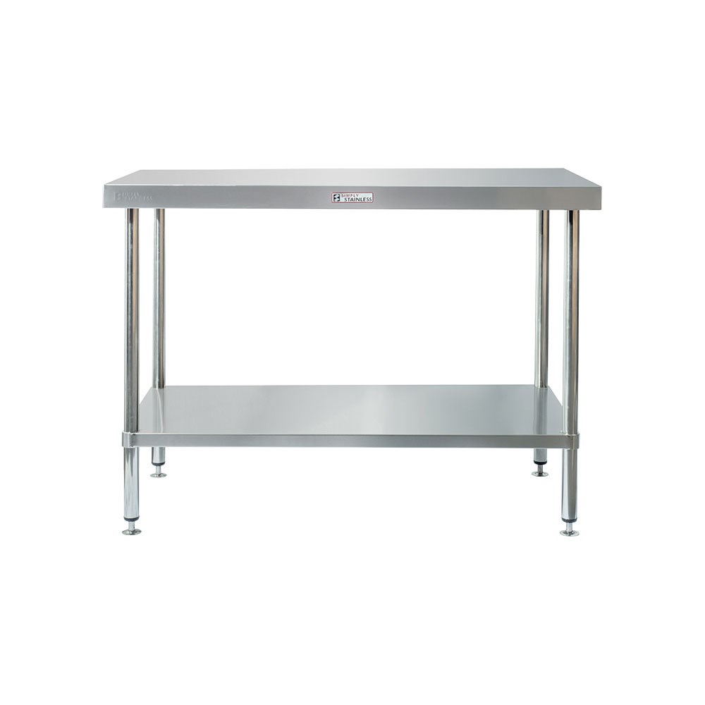 The Simply Stainless SS01 Flat Top Work Bench is available in **600mm, 700mm or 900mm deep** and available in seven different widths **from 600 - 2400mm wide**. Leg bracing models are also available (select 'Leg Brace' preference to add to cart). The Work Benches feature a 1.2mm thick stainless steel top with 3mm reinforced backing to work top. Optional accessories include: Drawer kits, Over shelves, Door Panel Kits, Extra Under Shelves Available.