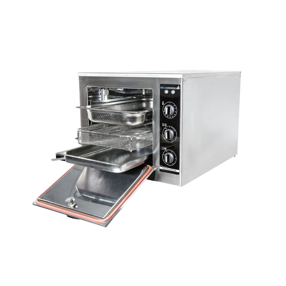 Create rich Smokey dishes for your customers with the Helia Smoker. The compact benchtop smoker has a large capacity to fit 5 gastronorm trays with hot and cold smoking options to deliver a range of dynamic flavours from your kitchen. The Helia Smoker has low energy consumption and short pre-heating times, with fully insulated double shell construction, makes it ideal for delis, farmers markets, restaurants and hotels. Helia Smokers have been made in Germany since 1983, offering an electrical pressure chamber grill and smoking oven suitable for every type of professional, semi-professional or domestic kitchen. With expertise in commercial kitchens and broad professional networks combine to produce the best of European catering equipment to match culinary experts requirements.