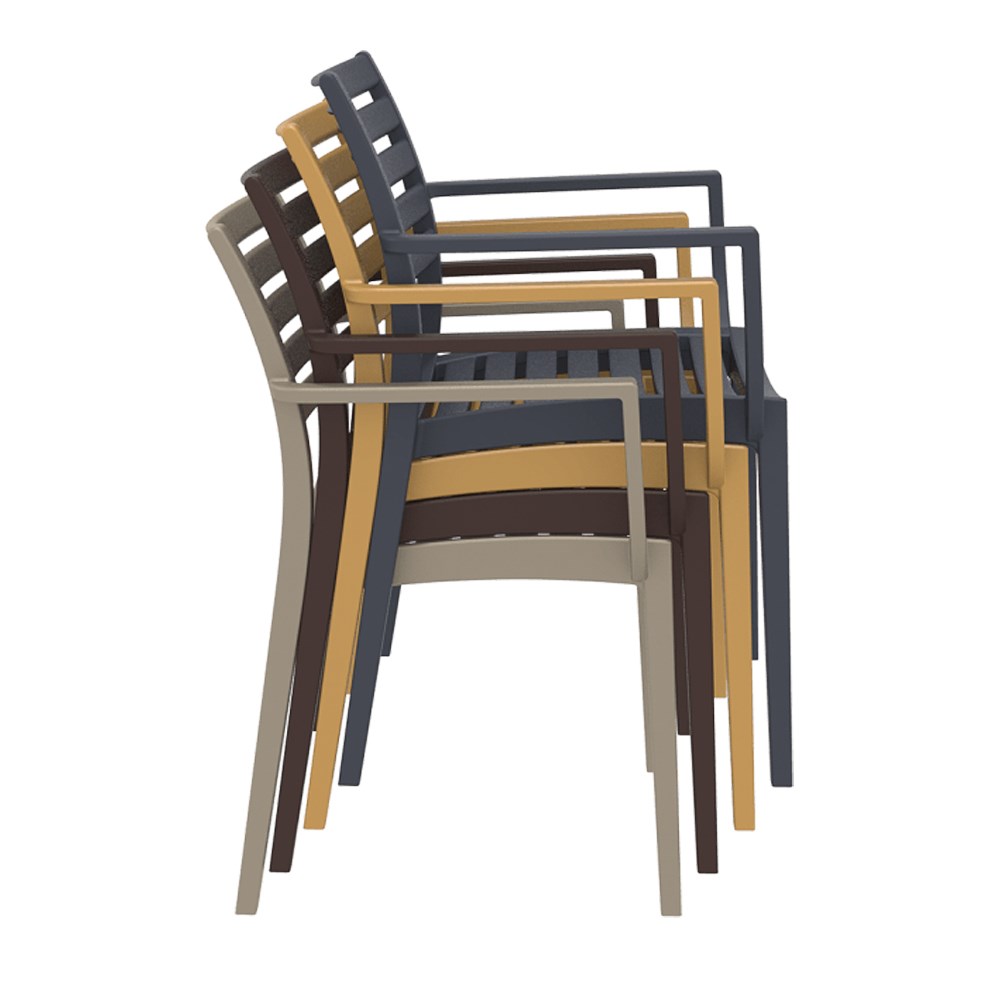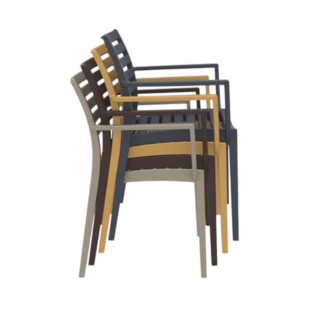 This weather-resistant chair is stackable up to six high, supplied fully assembled, and tested to CATAS standards. The Artemis Arm Chair 450mm Siesta is ideal for both indoor and outdoor spaces and pairs perfectly with the Ares Chair and Ares Barstool.