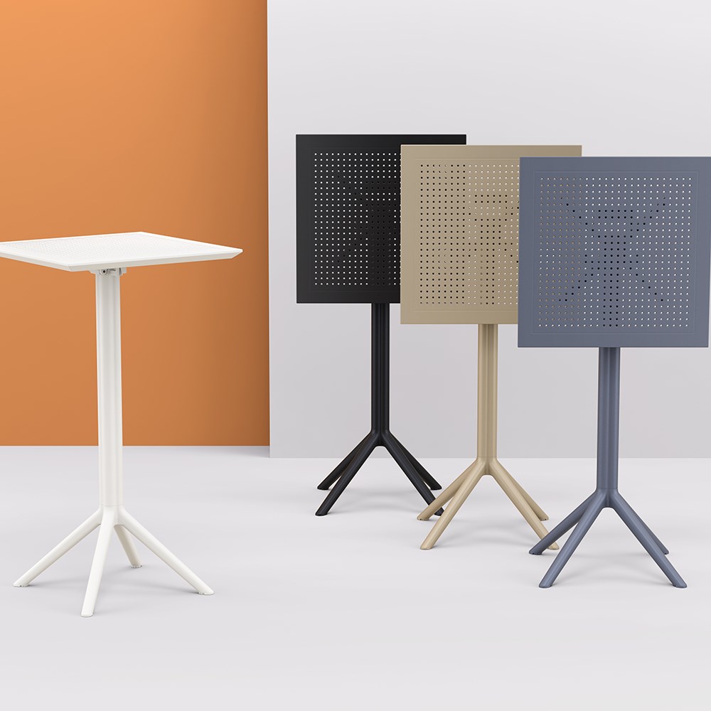 Siesta Sky Folding Bar Table by Furnlink is a classic polypropylene table that has been made from the latest generation of air moulding technology. Ideal for indoor lounge or restaurant settings, this table is perfect for commercial kitchens and bedrooms.
