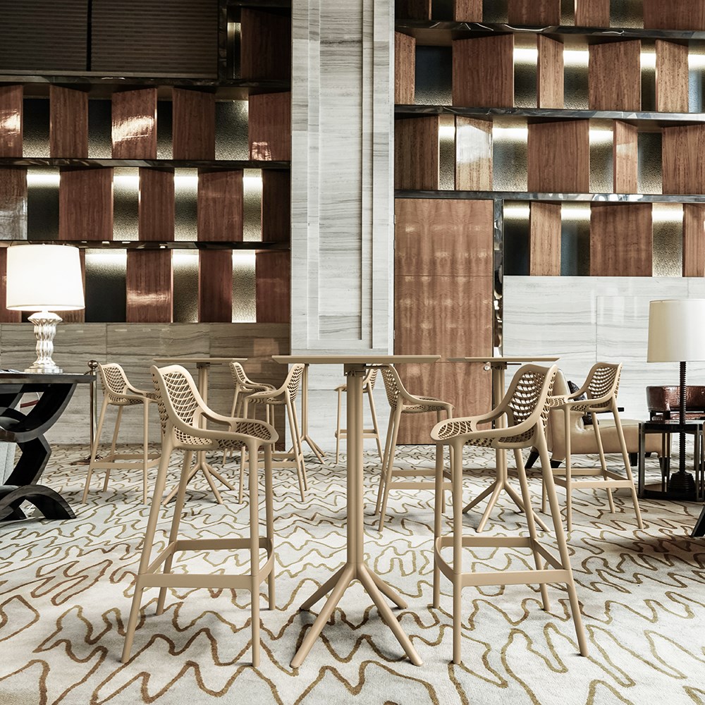 Siesta Sky Folding Bar Table by Furnlink is a classic polypropylene table that has been made from the latest generation of air moulding technology. Ideal for indoor lounge or restaurant settings, this table is perfect for commercial kitchens and bedrooms.
