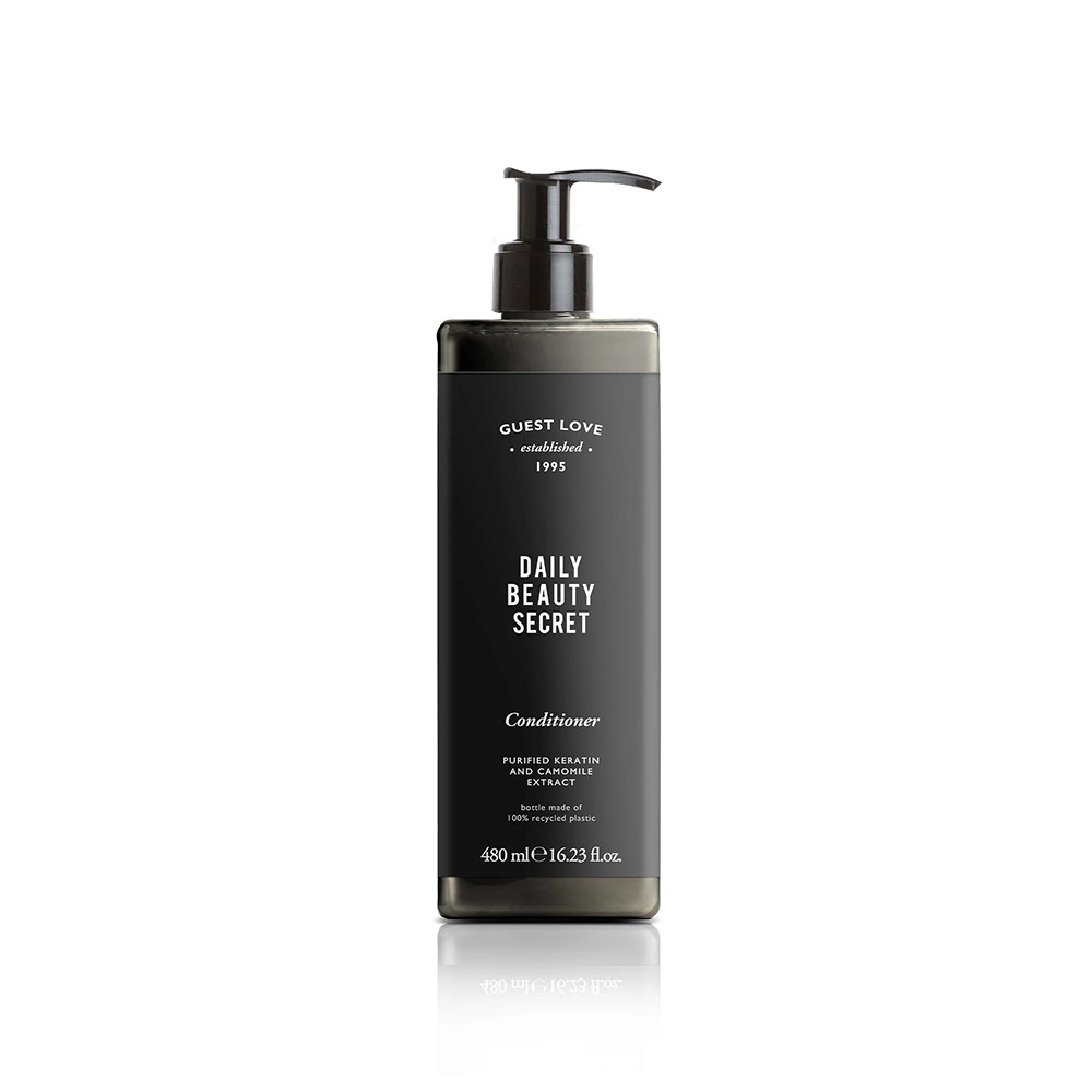 Improve guest satisfaction in your bathrooms with the Guest Love 480ml Conditioner by GFL Cosmetics. Presented in a sophisticated pump bottle that will complement any washroom decor, this non-refillable conditioner offers a luxurious and refreshing shower experience. Designed with waste reduction in mind, the eco-friendly packaging is made from 100% recycled plastic, which will appeal to environmentally conscious consumers. The generous 480ml capacity ensures lasting usage across stays and reduces time spent on restocking, and the locked pump provides guests with peace of mind.