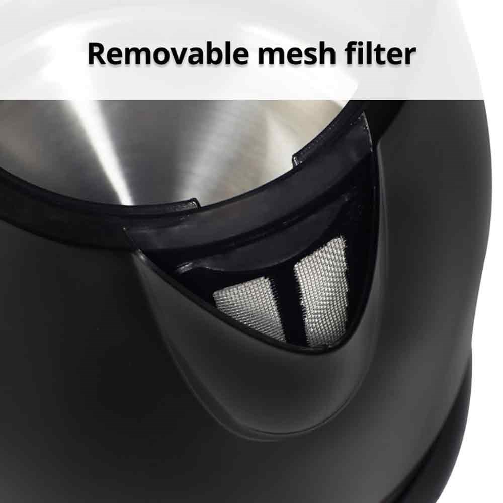 With a concealed element and no steam pipe, cleaning is effortless, maintaining the kettle's sleek appearance. Boil dry protection guarantees safety by automatically shutting off when water levels are low. The removable mesh filter ensures a smooth pour, free from impurities. Featuring a 360-degree base, the Nero Kettle Bambino offers versatility, allowing for easy lifting and pouring from any angle.