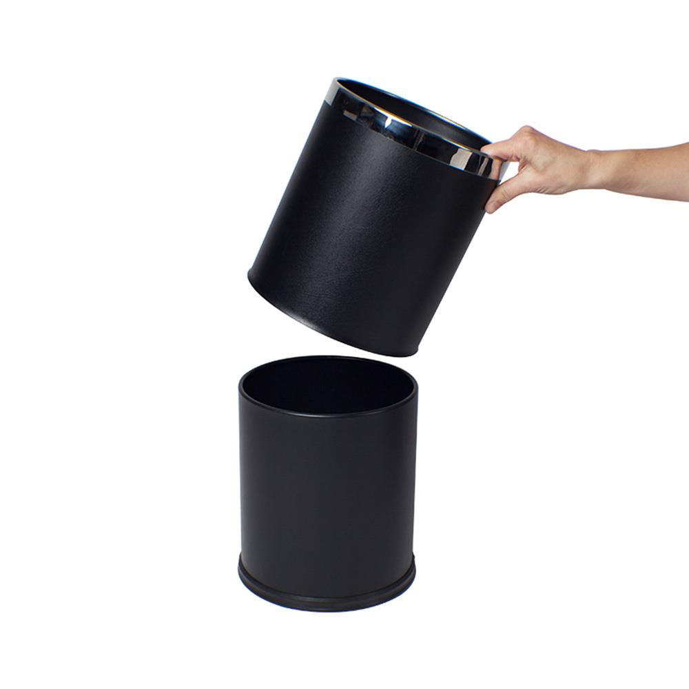 The Waste Bin Round Leather Black 10L Probbax offers a stylish and practical solution for waste disposal. Designed with a large 10L capacity, this bin is perfect for use in various spaces such as bathrooms, kitchens, bedrooms, and offices. Its leatherette finish adds a sophisticated touch, while the two-piece construction helps disguise the liner for a clean look. A rubber rim on the base ensures stability and prevents slipping, making it a reliable choice for any room.