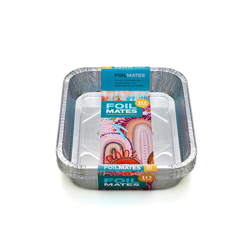 The Foil Mates Barbeque Tray (20x10) from Confoil is a high-quality and all-purpose foil tray that is suitable for ovens, barbeques, catering, and meal prep. These trays are made from food-safe materials and manufactured in safety-certified facilities. They are also environmentally friendly since staff can recycle them and only need to scrunch or fold the trays and place them in the kerbside recycling bin.