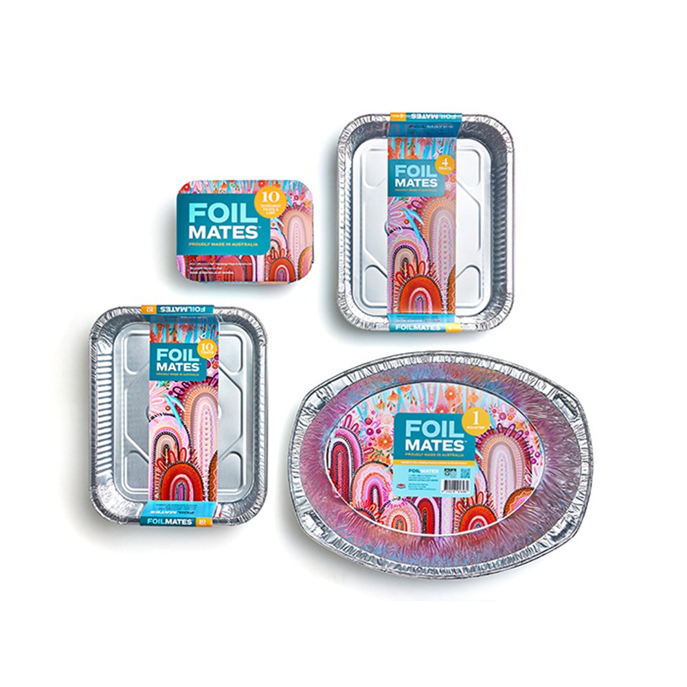 Featuring the famous Yaptjarra artwork by Aboriginal First Nations artist Brooke Sutton, these trays showcase incredible art while providing heavy-duty and leak-proof cooking and handling of dishes. Available in 20 packs per carton, suitable for ordering and stock planning, and making them ideal for commercial catering services, restaurants, food trucks, and food production businesses.